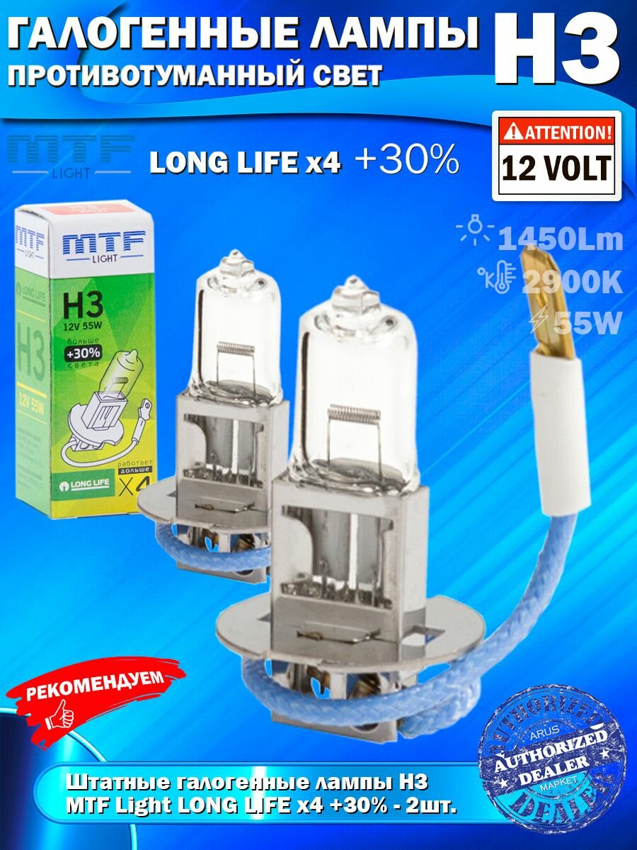 Галогенные лампы MTF Light H3 - противотуманный свет, 12V, 55W, +30% LONG LIFE x4, 2шт. на автомобили OPEL VECTRA B Caravan (J96) 11/96-07/03 интересное: