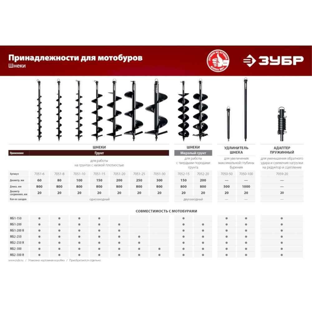 | Дополнительная информация | Для мотобуров ЗУБР МБ1-150, МБ1-200, МБ1-200 Н, МБ2-250, МБ2-250 Н, МБ2-300, МБ2-300 Н |