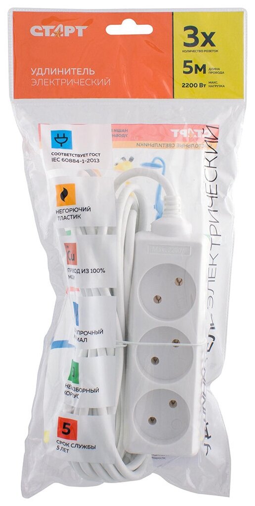 Сетевой удлинитель старт С/У S 3x5, 3 розетки, 5м интересное: