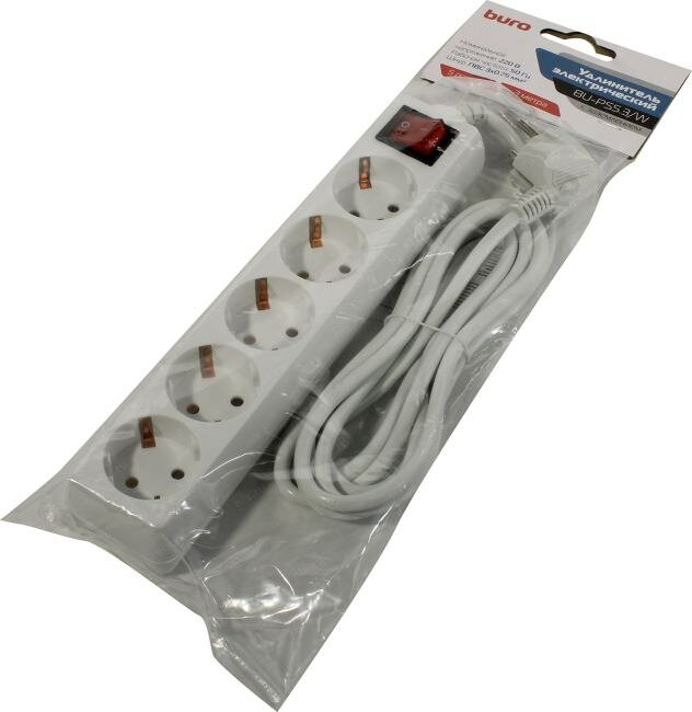 Купить Сетевой удлинитель Buro BU-PS5.3/W 3м (5 розеток) белый (пакет ПЭ)
