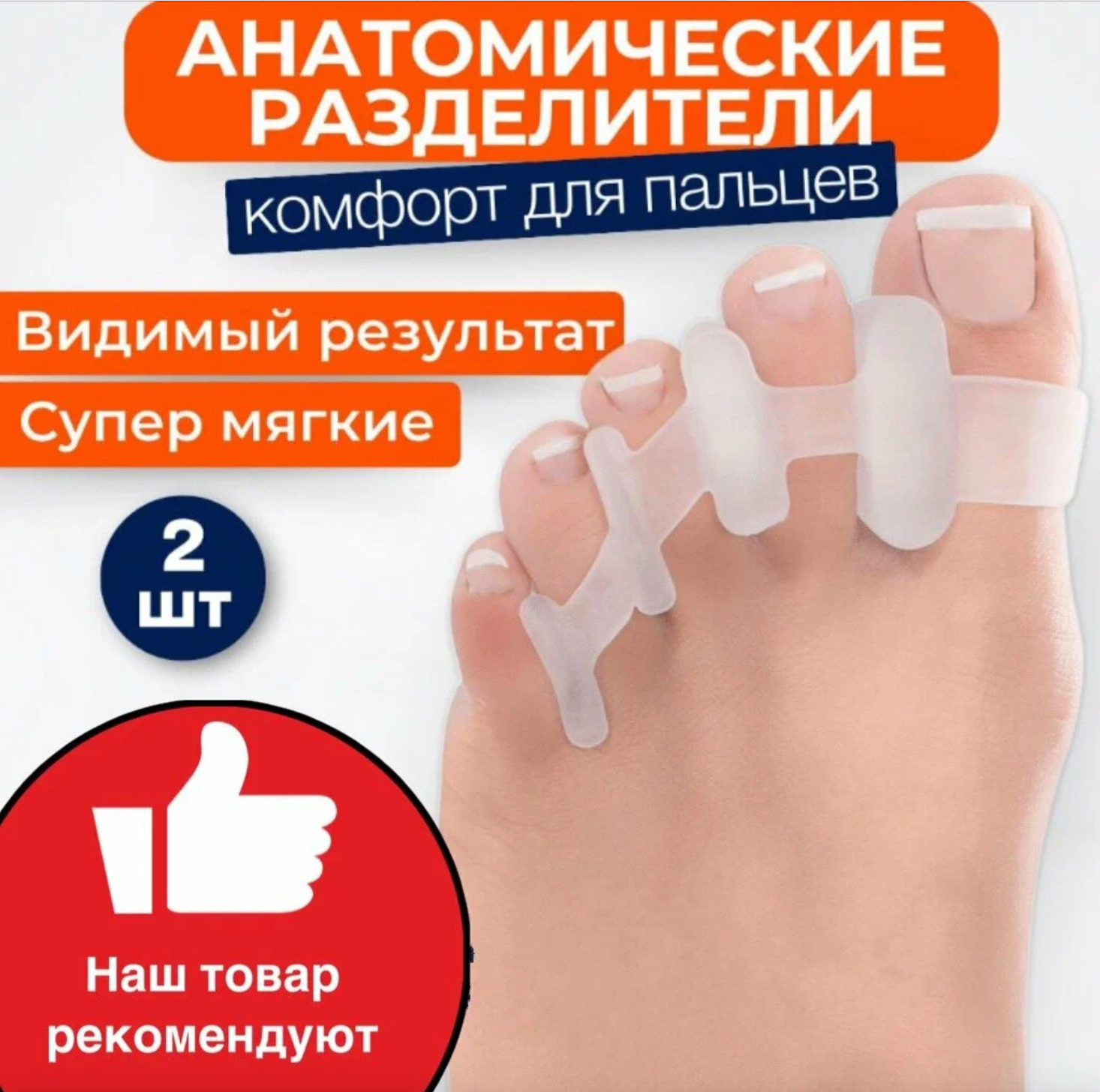 Силиконовые межпальцевые разделители/Анатомическая межпальцевая перегородка 2шт