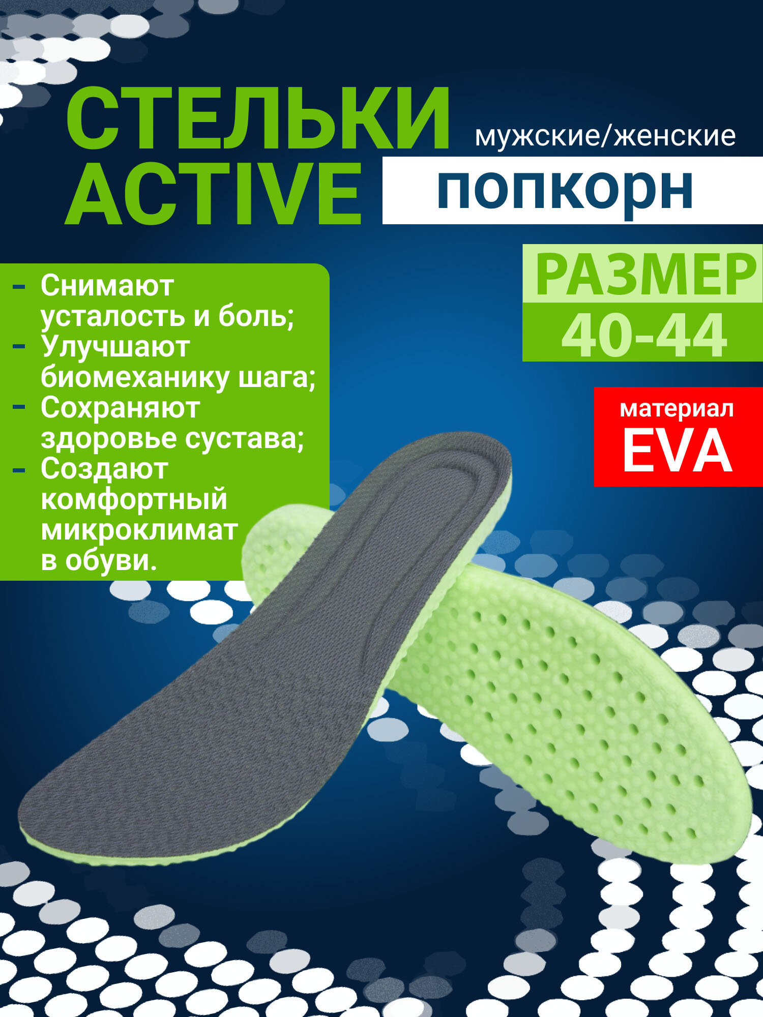 Купить Ортопедические Анатомические стельки "Popcorn" (Попкорн) Activ Для спортивной и повседневной обуви Мягкие амортизирующие дышащие р. 40-44
