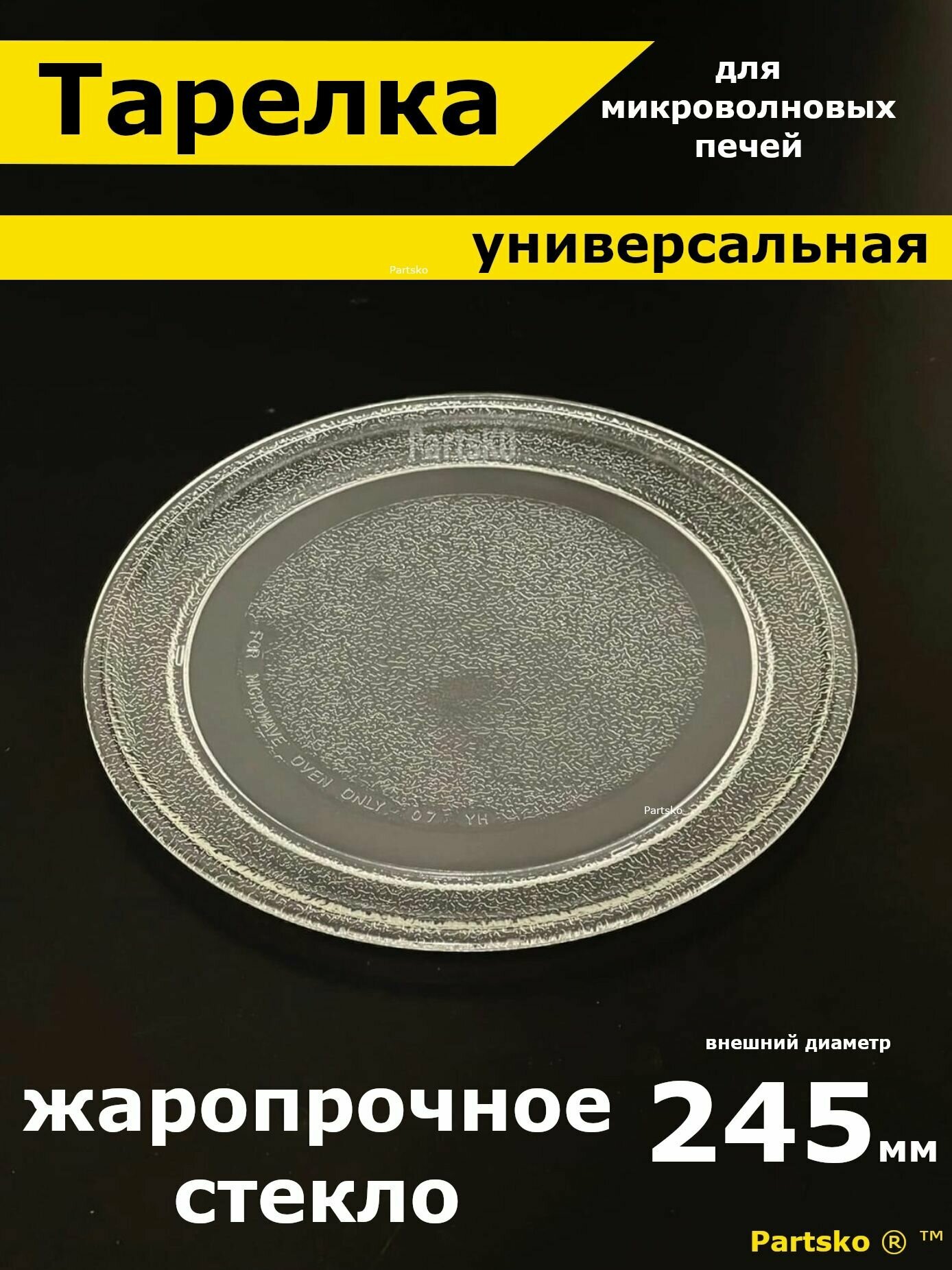 Тарелка для микроволновой печи 245 мм / СВЧ. Для вращения поддона микроволновки LG, Daewoo, Gorenje, Bork. Универсальная гладкая, без отверстия под куплер. Поворотный стол стеклянный, круглый. интересное: