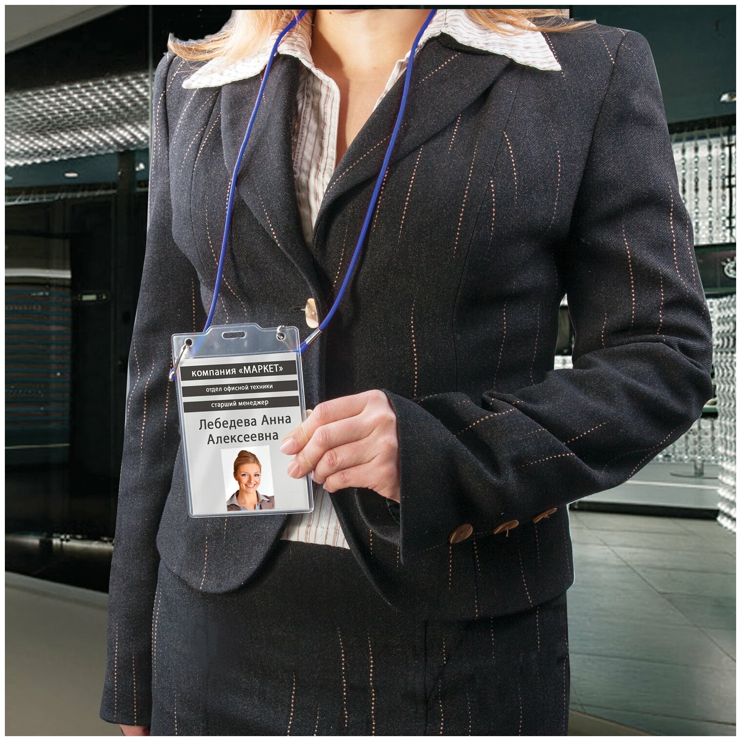 Бейдж вертикальный Brauberg, 120х90мм, прозрачный, мягкий пластик, на синем шнурке 45см, 2 карабина (235716), 20шт.