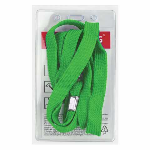 Бейдж вертикальный (90х60 мм), на зеленой ленте 45 см, BRAUBERG 5 шт, 235700