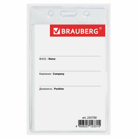 Бейдж вертикальный (90х60 мм), на черной ленте 45 см, BRAUBERG, 235702
