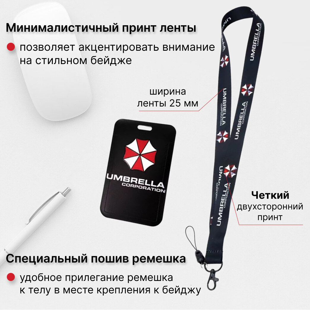 Купить Чехол для пропуска, карточки, бейджик с лентой Umbrella Corporation Resident Evil Корпорация Амбрелла Обитель Зла