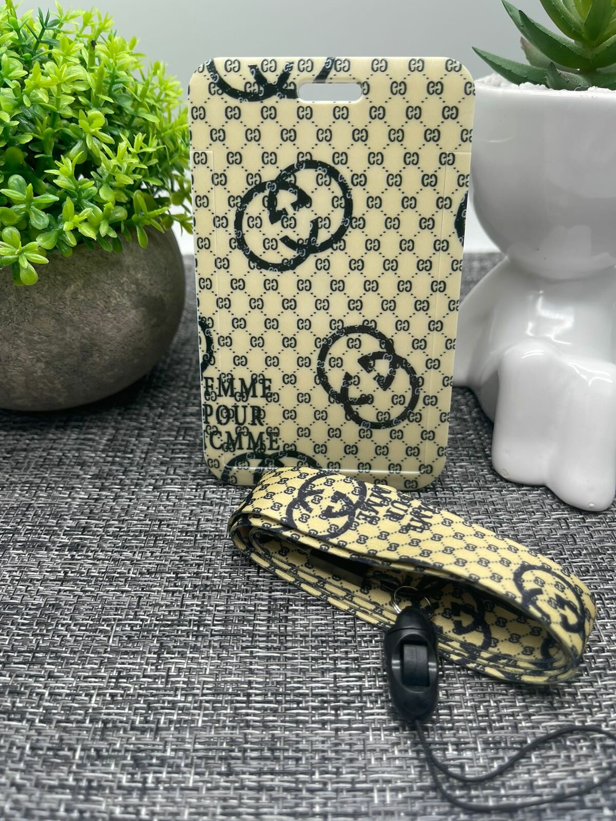 Купить Бейдж для студентов с принтом Gucci (бежево-черный)