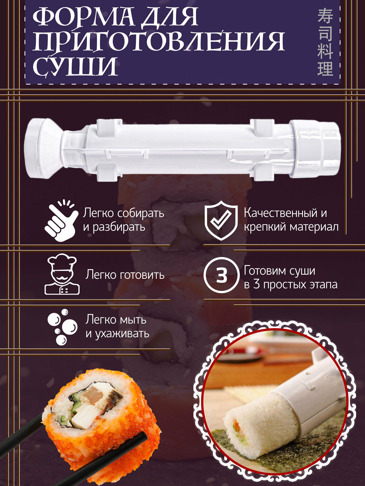 "Fidget Go" - форма для суши и домашних роллов из пластика белого цвета интересное: