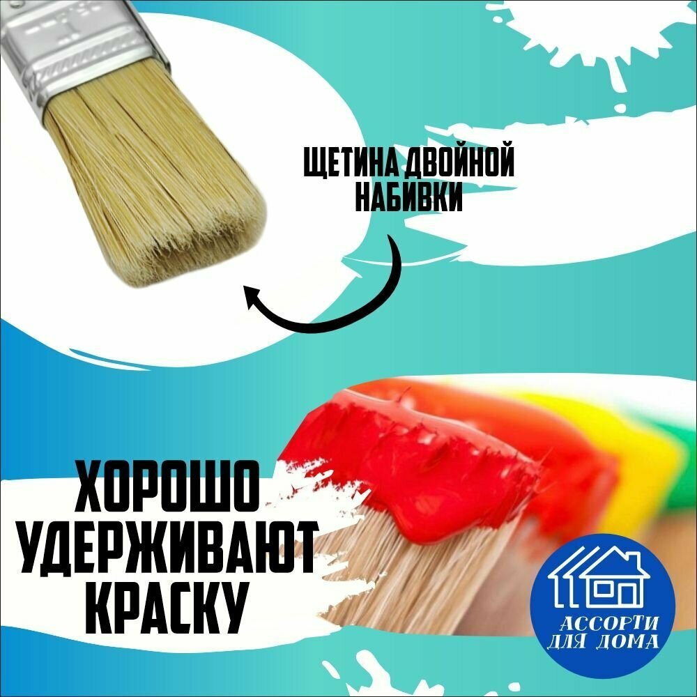 Кисть малярная флейцевая плоская 1" (25 мм), натуральная щетина, пластмассовая рукоятка, 3 штуки/ кисточка для краски, лака, ЛКМ интересное: