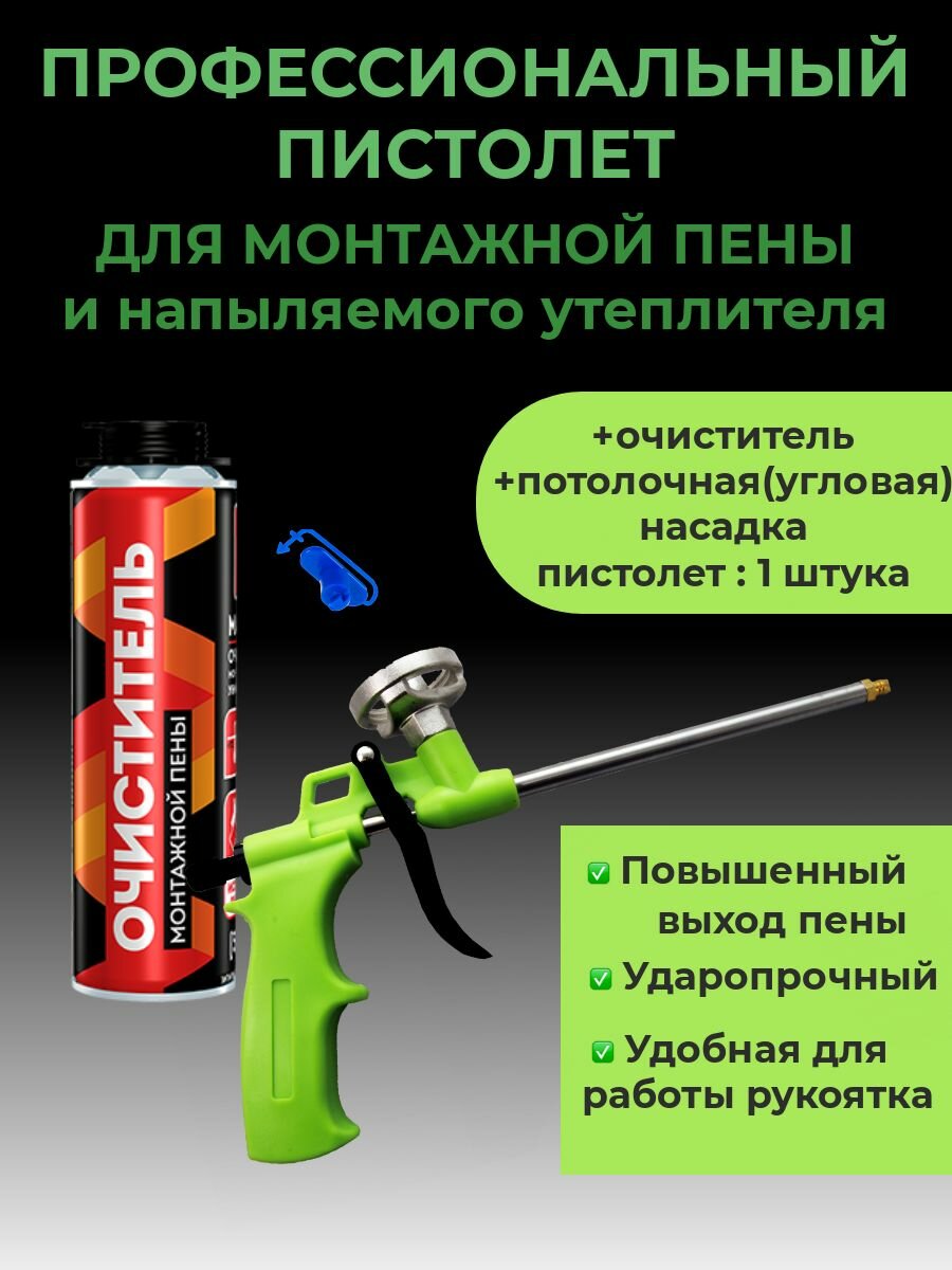 Профессиональный монтажный пистолет для пены и напыляемого утеплителя 1 шт + очиститель для монтажной пены + насадка потолочная интересное: