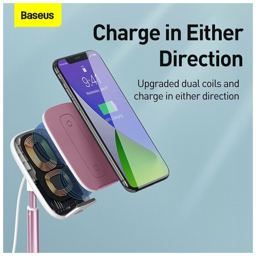 Настольная подставка с беспроводной зарядкой BASEUS Literary Youth, розовое золото