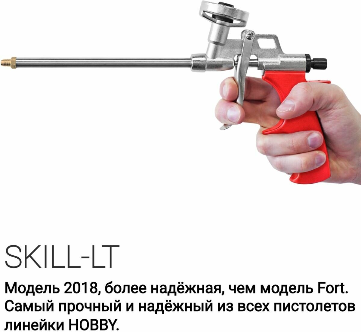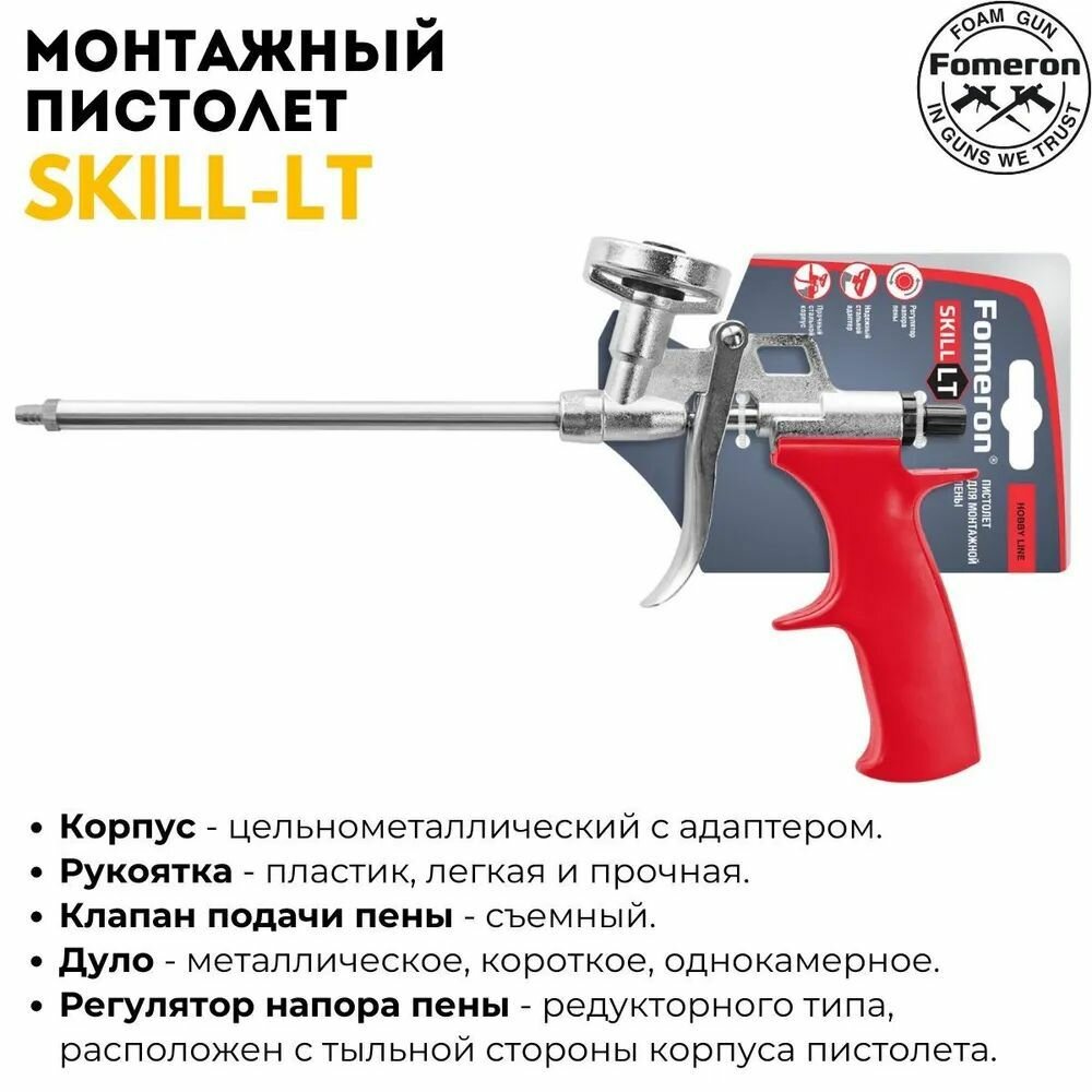 Пистолет для монтажной пены Fomeron Skill LT/ цельнометаллический корпус, съемный клапан, редуктор-регулятор подачи пены, легкая и прочная рукоятка