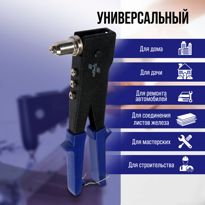 Тундра Заклепочник тундра, 250 мм, поворотный 0-90°, заклепки 2.4 - 3.2 - 4 - 4.8 мм интересное: