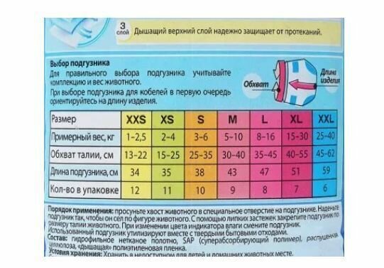 Подгузники для собак и кошек 2-4кг, размер XS, 11шт.
