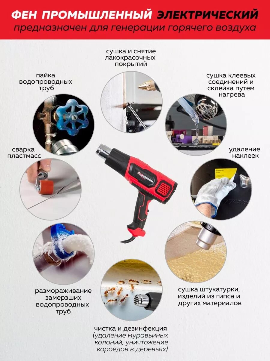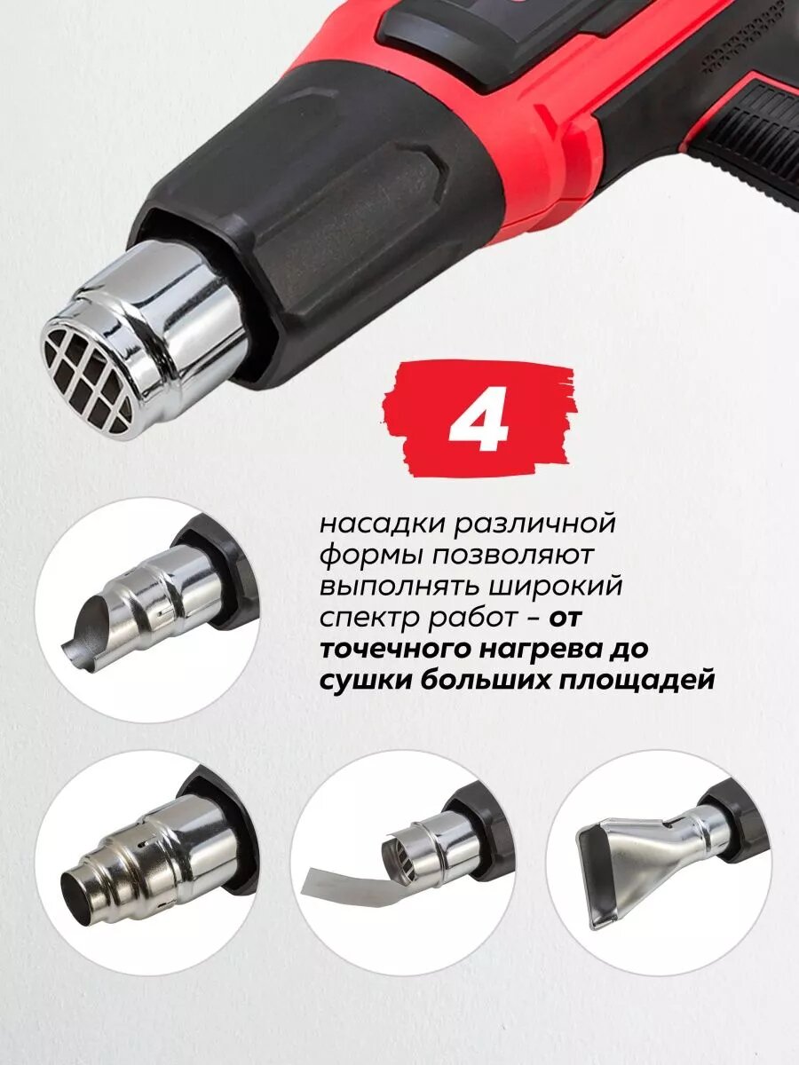 Фен промышленный электрический с дисплеем и насадками (60-600С, 300-500л/мин) интересное: