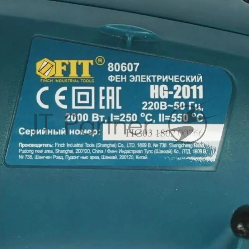 1шт. - Фен технический 2000 Вт, 250/500 C, 250/550 л/мин / FIT; арт. 80607; оригинал / - комплект 1шт