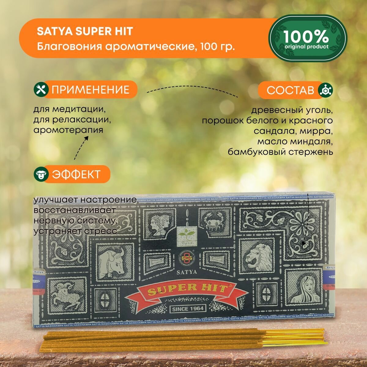 Благовония Satya Super Hit, Сатья супер хит, ароматические палочки, индийские, для дома, медитации, 100г, 70шт интересное: