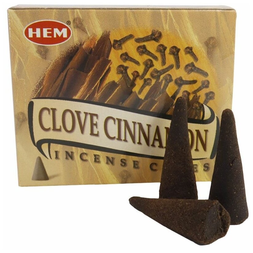 Купить Hem Incense CONES CLOVE CINNAMON (Благовония конусы гвоздика корица, Хем), уп. 10 конусов.