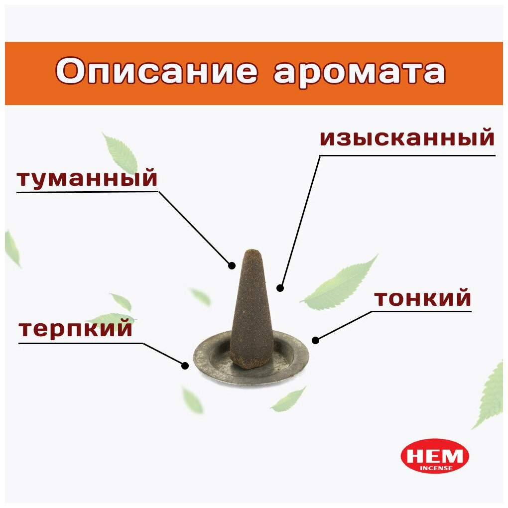 HEM Сандал - 10 шт, ароматические благовония, конусовидные, конусы с подставкой, Sandal - ХЕМ