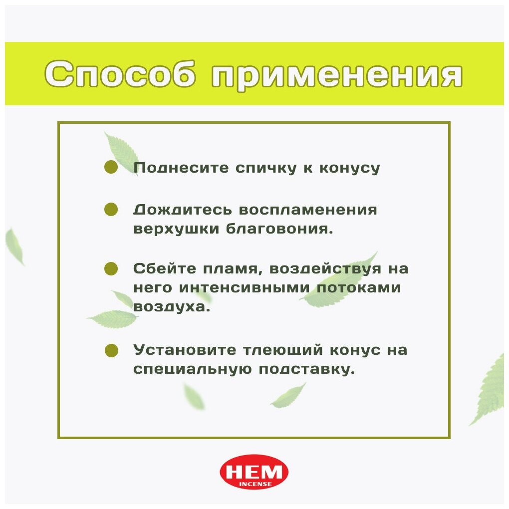 HEM Зеленый чай - 10 шт, ароматические благовония, конусовидные, конусы с подставкой, Green tea - ХЕМ