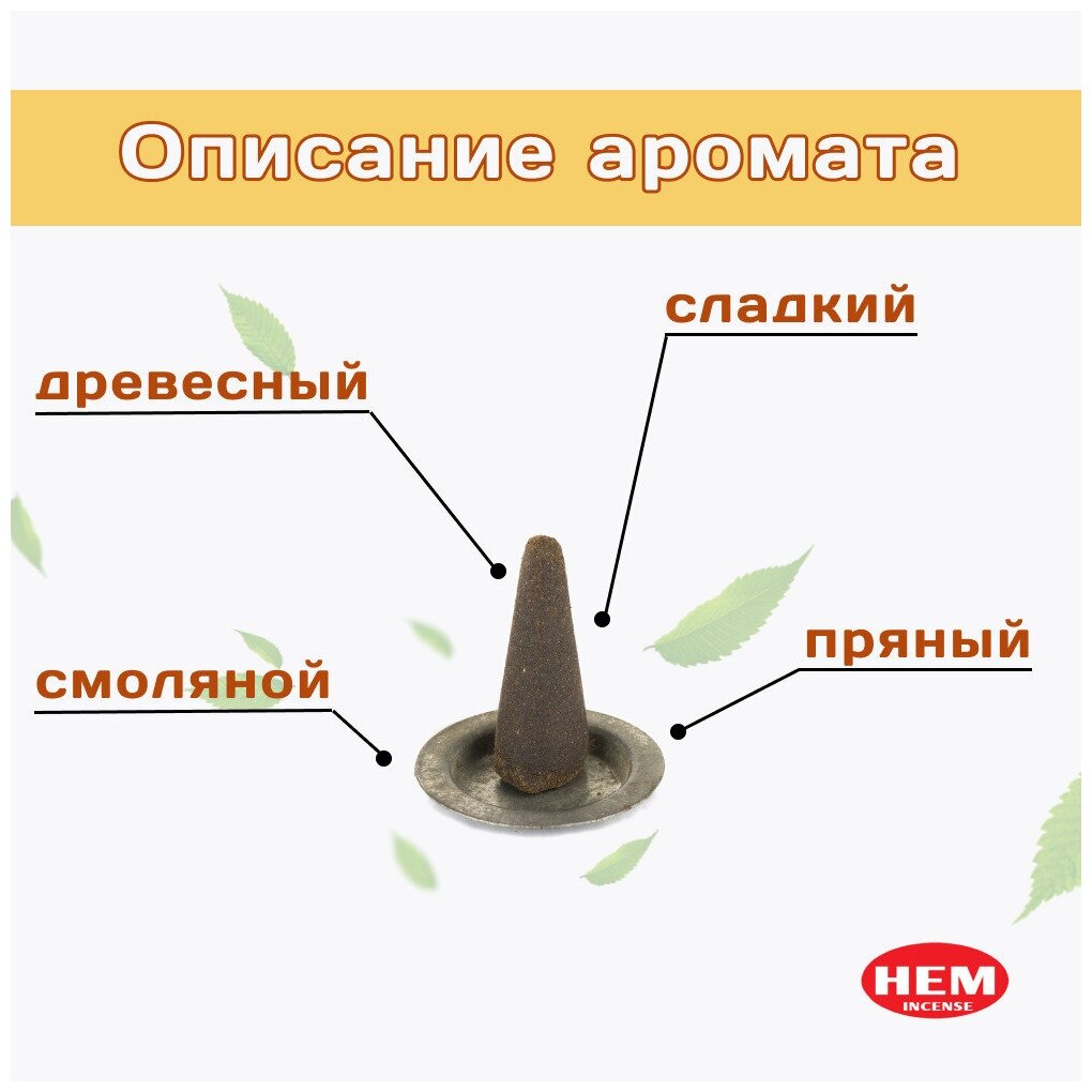 HEM Сандал - 10 шт, ароматические благовония, конусовидные, конусы с подставкой, Sandal - ХЕМ
