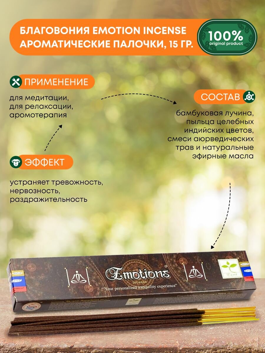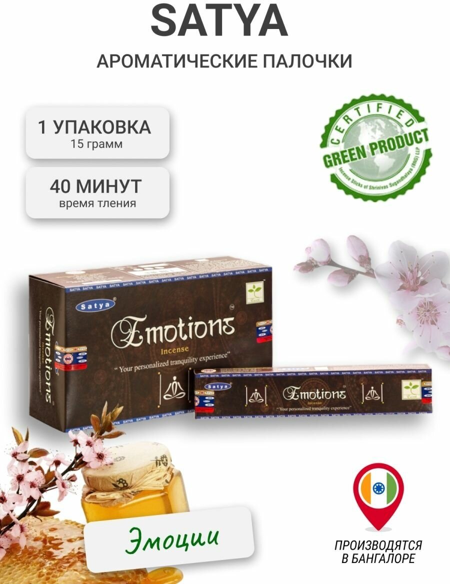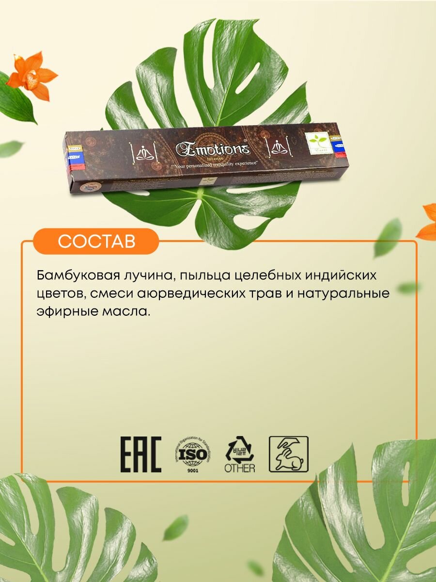 Благовония Emotion Incense (Эмоции) Ароматические индийские палочки для дома, йоги и медитации, Satya (Сатья), 15г интересное: