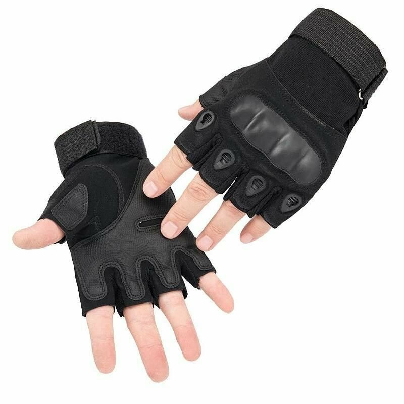 Тактические перчатки для мужчин без пальцев T02 / Перчатки с защитой костяшек боевые военные, для рыбалки, охоты и туризма, размер M, чёрный