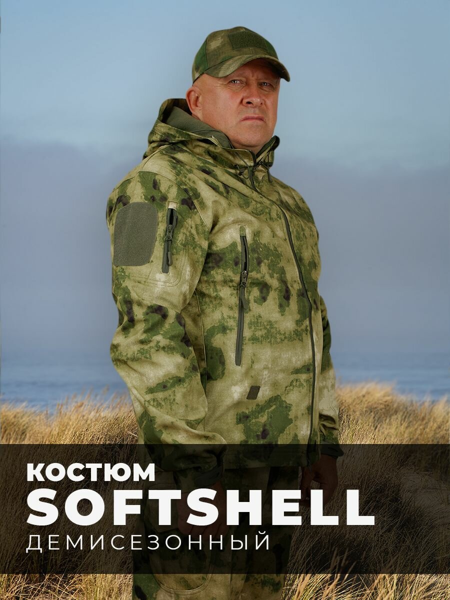 СохранитьКостюм демисезонный на флисе ткань Софтшелл Softshell цвет зеленый мох moss Corvus 60-62/5XL интересное: