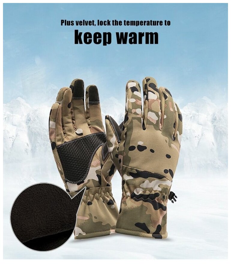 Перчатки зимние водонепроницаемые с флисовой подкладкой для охоты и рыбалки, цвет камуфляж размер XL/ для прогулок, туризма, походов / флис интересное: