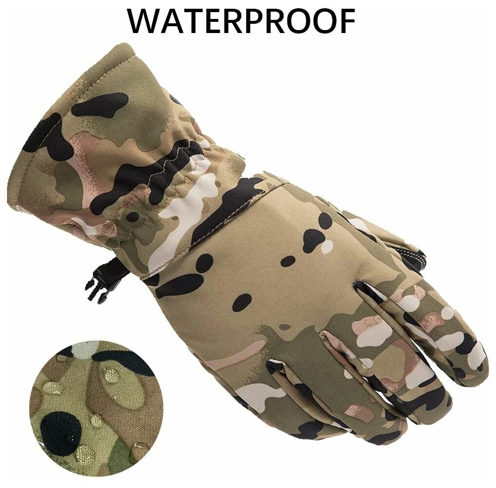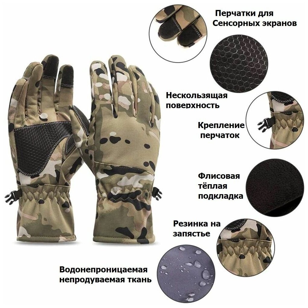 Перчатки зимние водонепроницаемые с флисовой подкладкой для охоты и рыбалки, цвет камуфляж размер XXL/ для прогулок, туризма, походов / флис интересное: