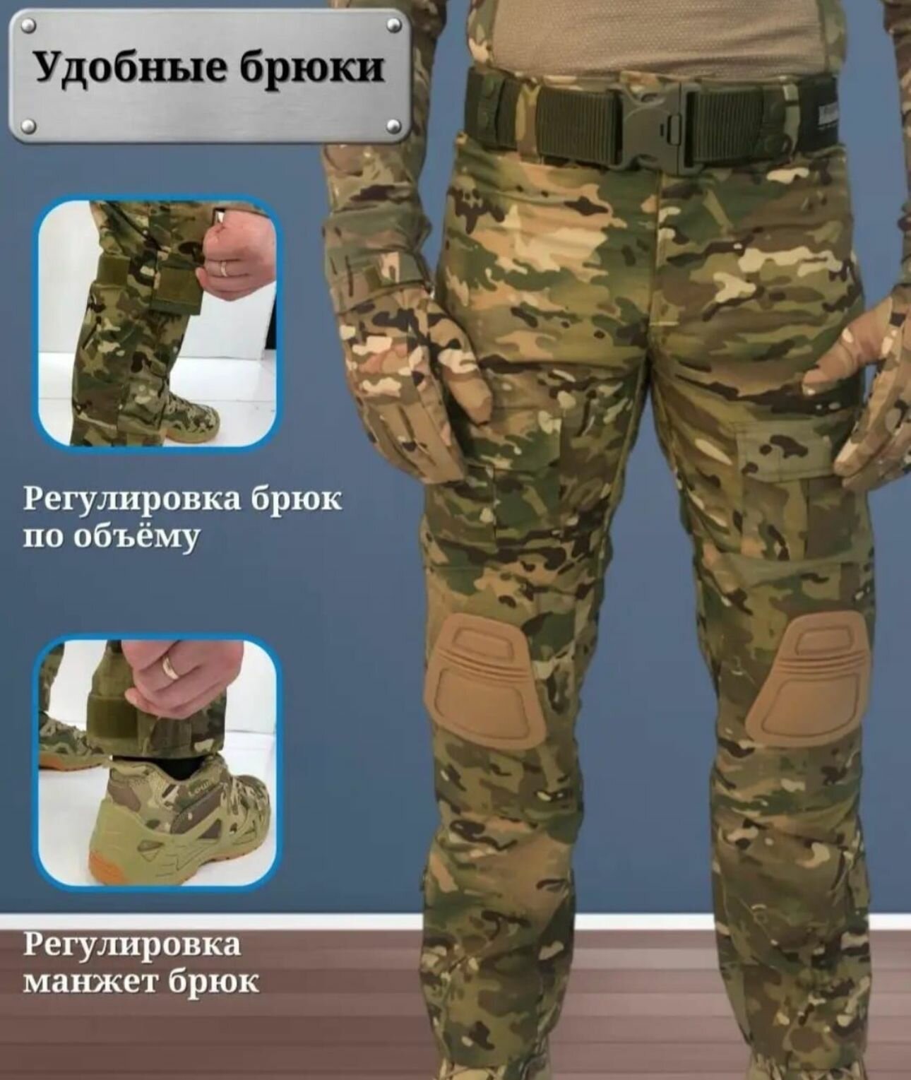 Тактический мужской костюм COMBAT с защитными наколенниками мультикам L