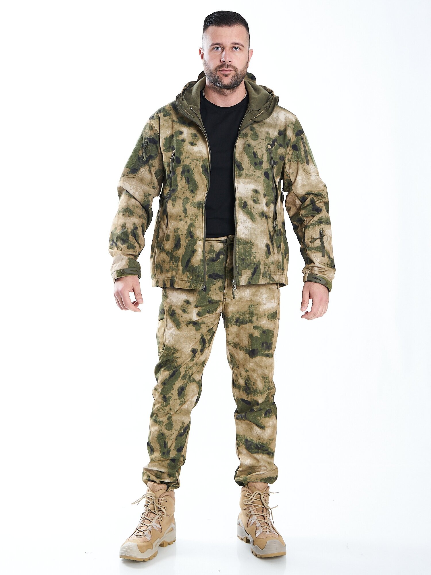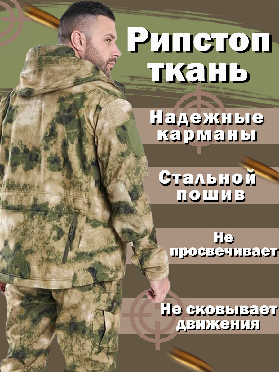 Камуфляжный костюм софтшел демисезон цвет: мох осень/весна (размер: 48-50) интересное:
