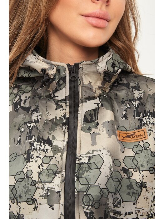 Костюм женский демисезонный для рыбалки и охоты подклад флис KATRAN рица (полофлис, серые соты), Размер: 48-50 Рост: 170-176