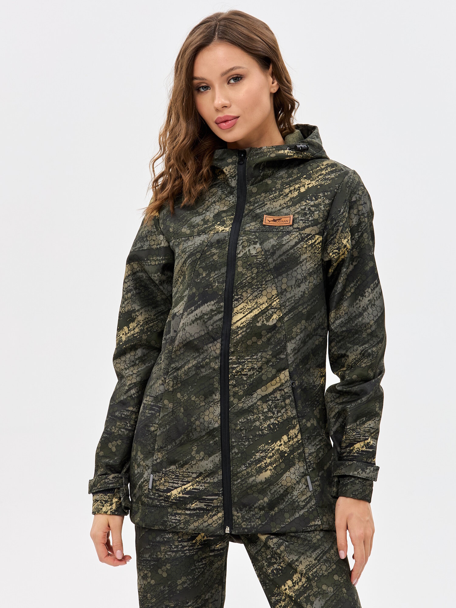 Костюм женский демисезонный для рыбалки и охоты подклад флис KATRAN ладога (полофлис, Коричневый КМФ), Размер: 52-54 Рост: 158-164