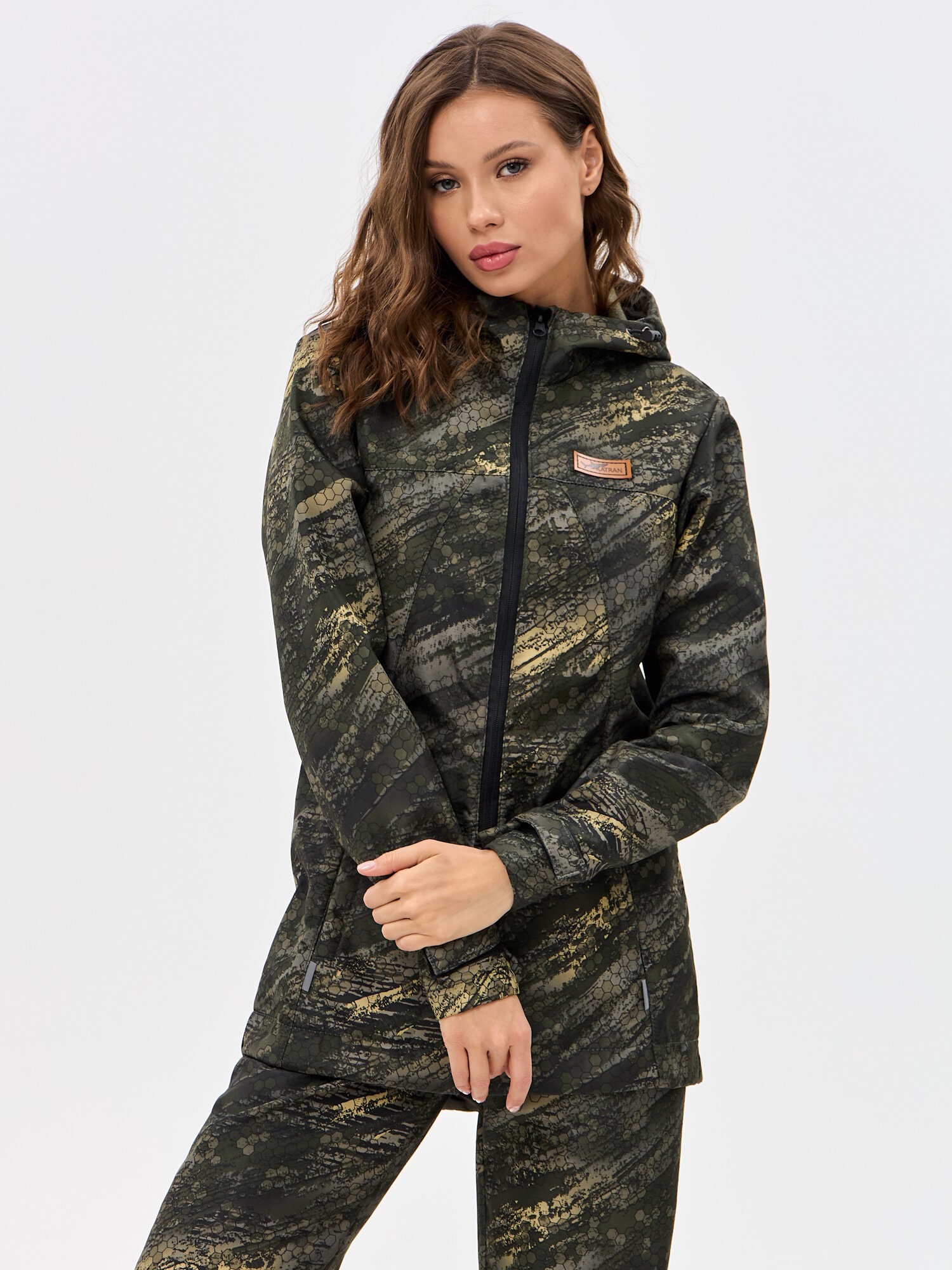 Костюм женский демисезонный для рыбалки и охоты подклад флис KATRAN ладога (полофлис, Коричневый КМФ), Размер: 52-54 Рост: 158-164