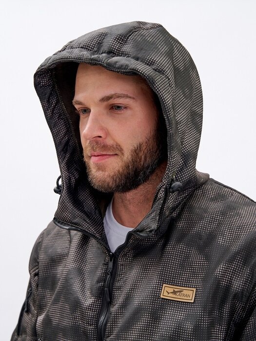 Костюм мужской для рыбалки и охоты демисезонный подклад флис KATRAN Такин 0°C (полофлис, рептилия), Темно-серый, Размер: 48-50 Рост: 182-188