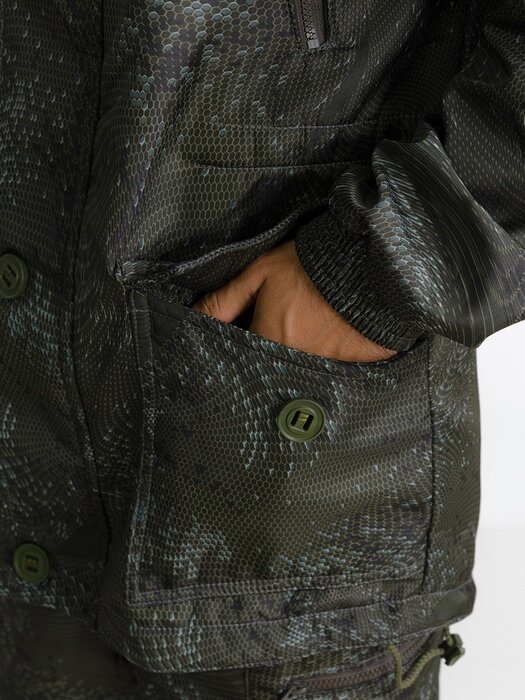 Костюм мужской для рыбалки и охоты демисезонный подклад флис KATRAN Такин 0°C (полофлис, рептилия), Темно-серый, Размер: 68-70 Рост: 182-188