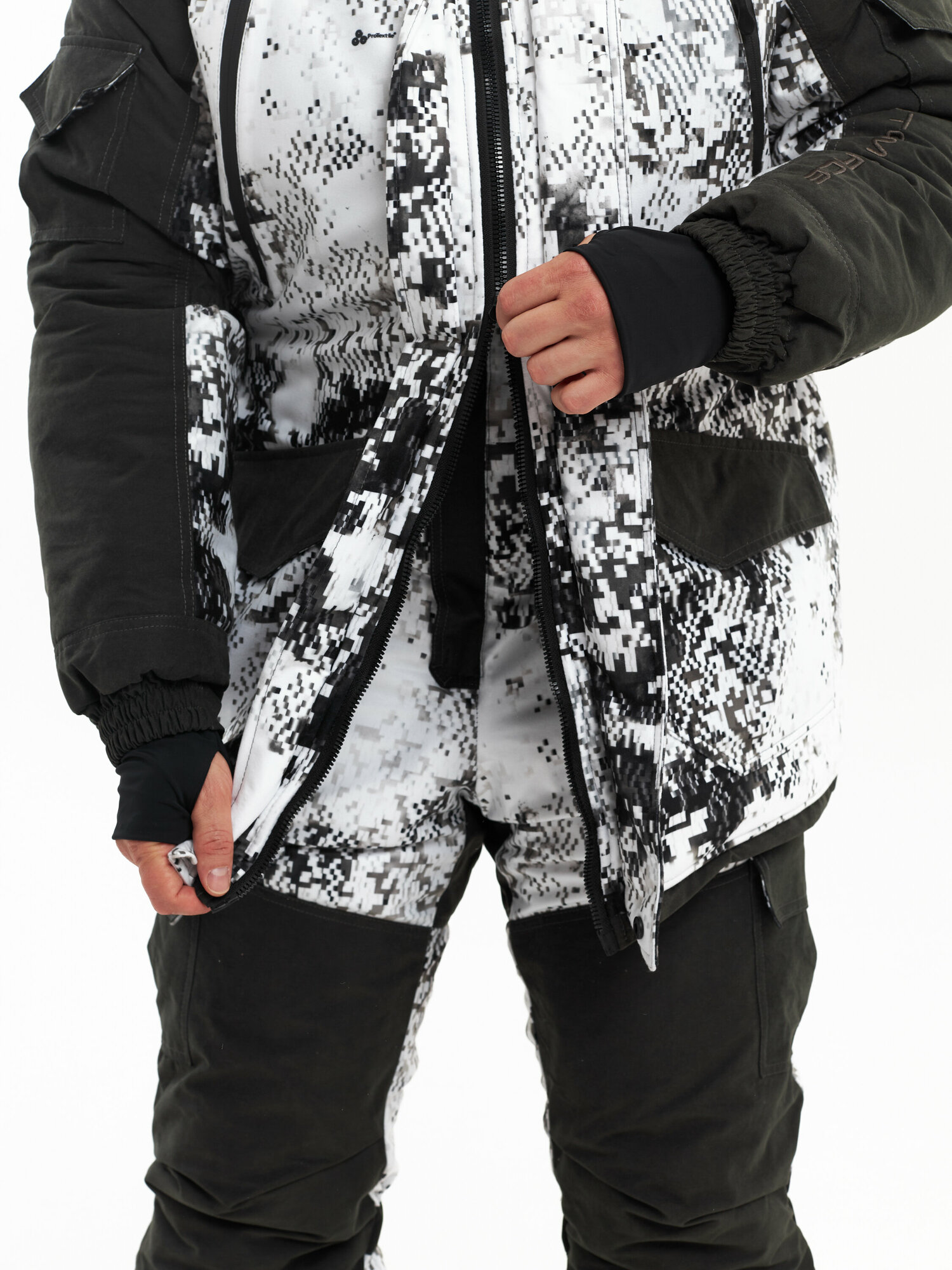 | Особенности | анатомический крой контактных зон / влагонепроницаемые молнии / с воротником / с капюшоном / с карманами / усиление контактных зон |