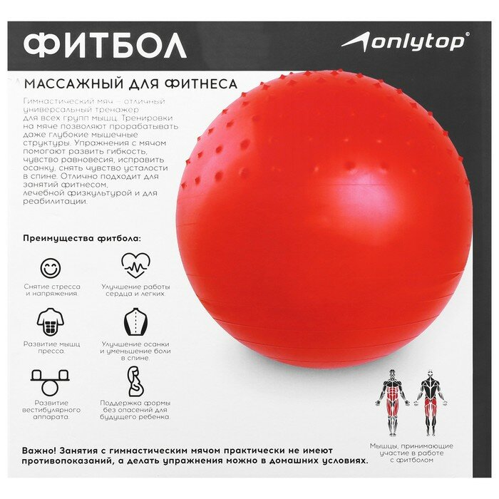 Фитбол ONLYTOP d=65 см, 1000 г, полумассажный, цвета микс, 582510 интересное: