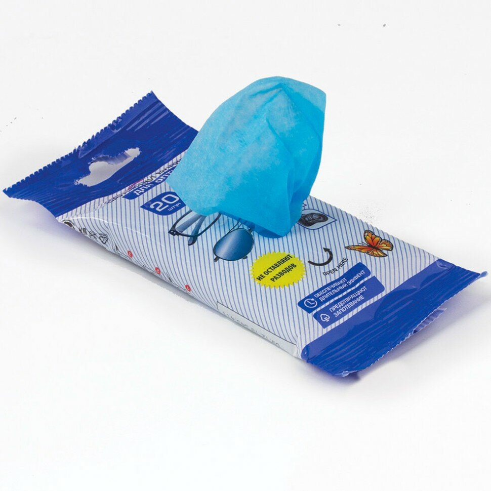 Салфетки влажные LAIMA "для очков и оптики" (смартфоны, объективы) компактная упаковка, 20 штук, 605661
