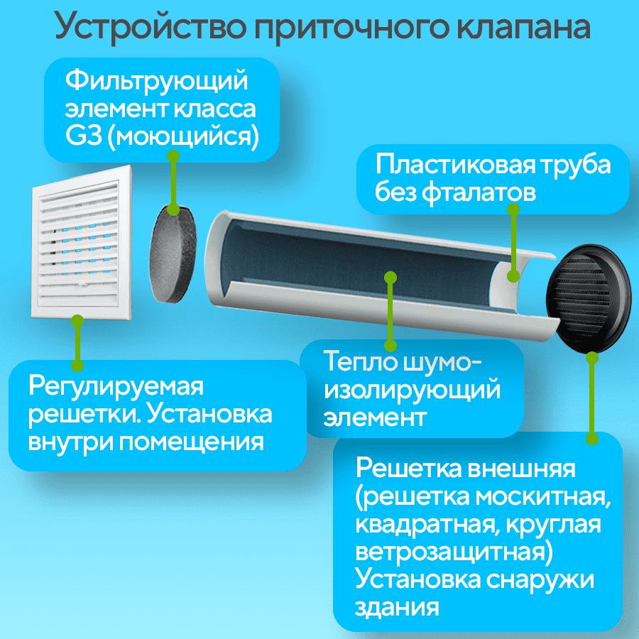 СохранитьПриточный клапан вентиляционный, КП-1005-03-WG, диаметр 100мм, длина 0,5м интересное: