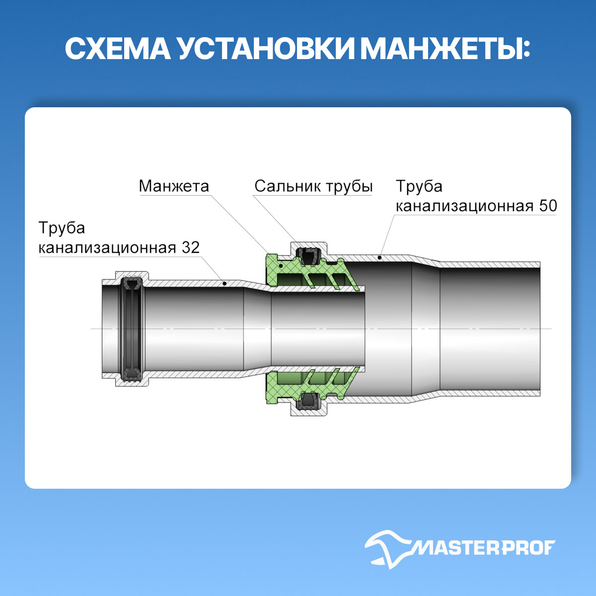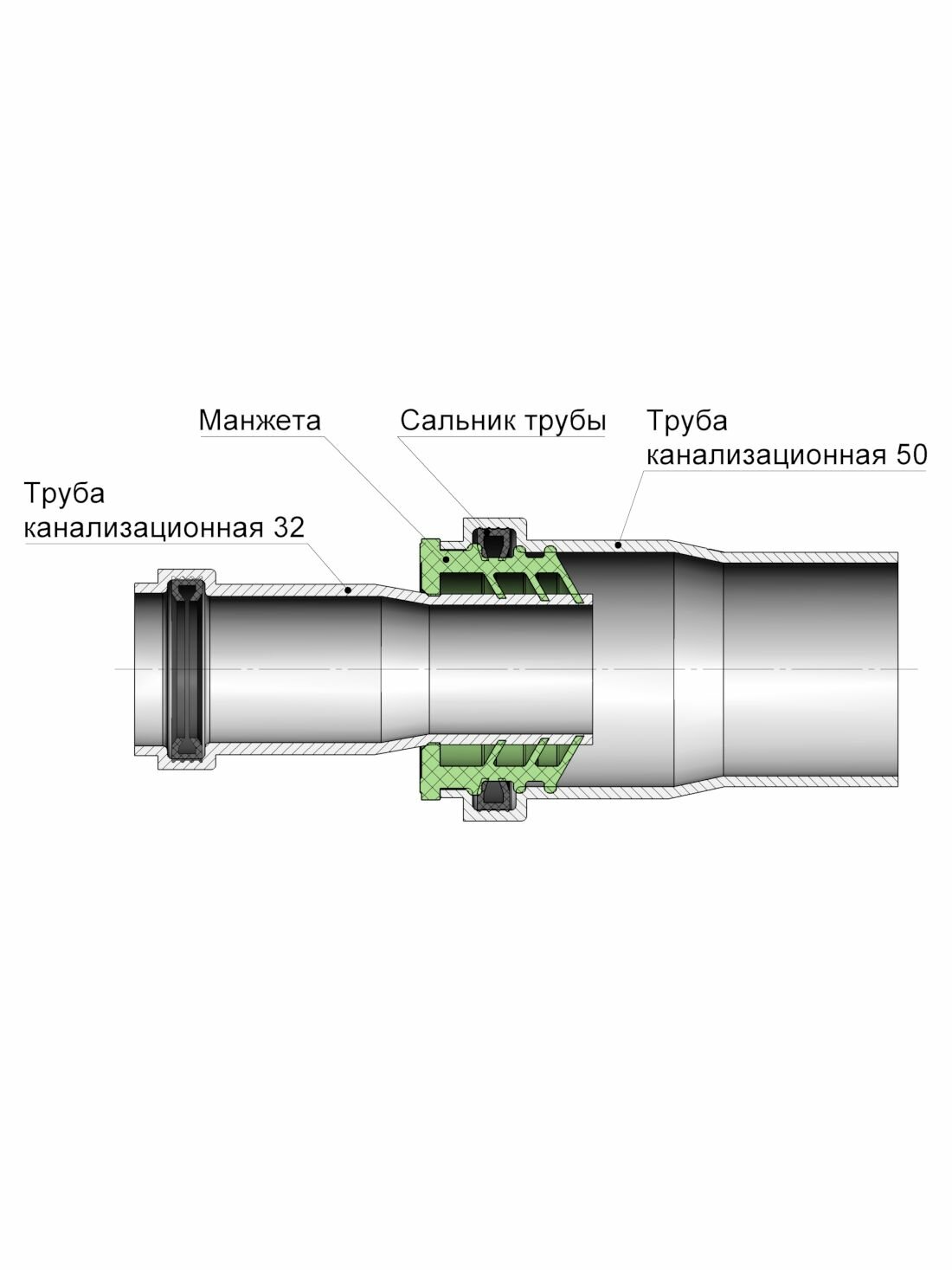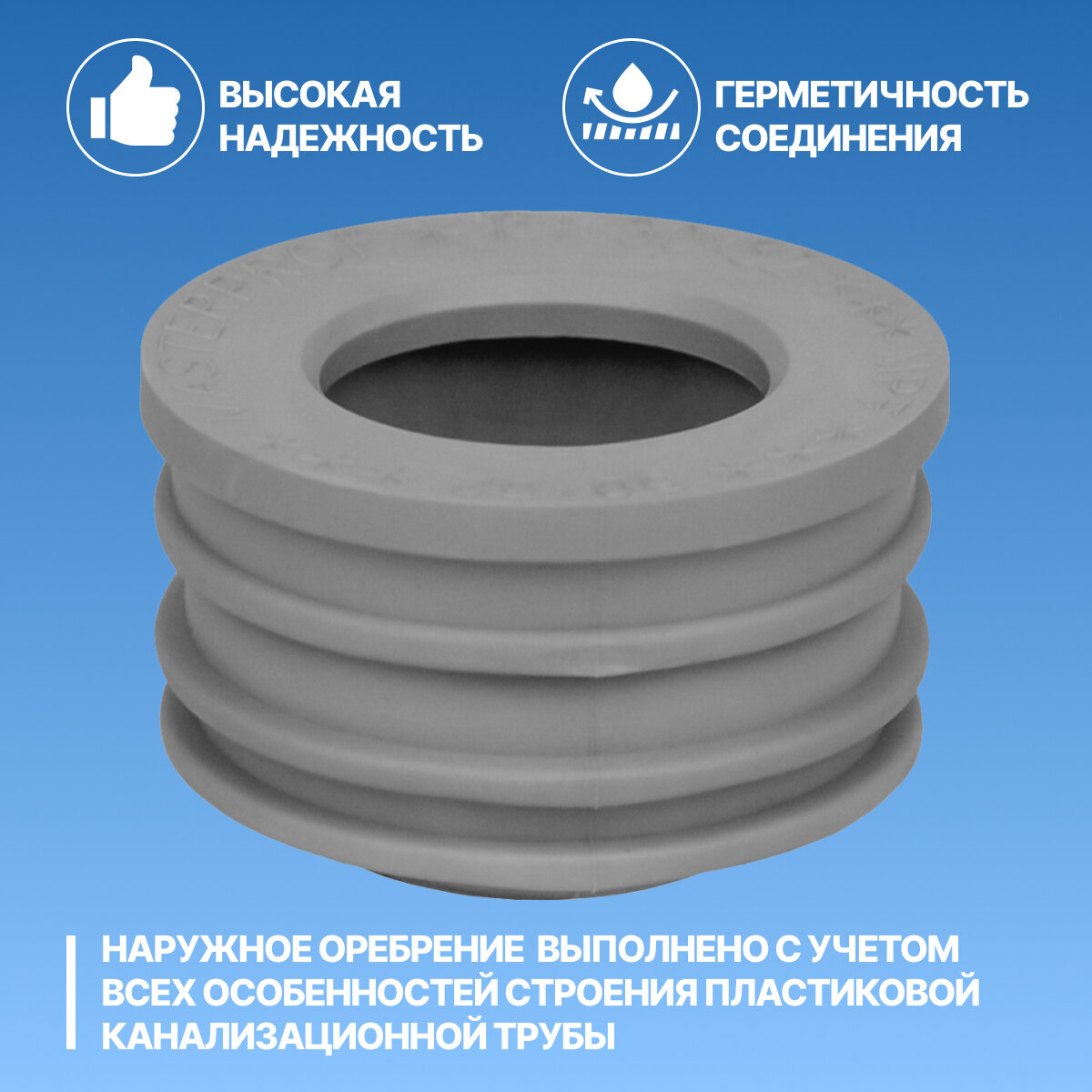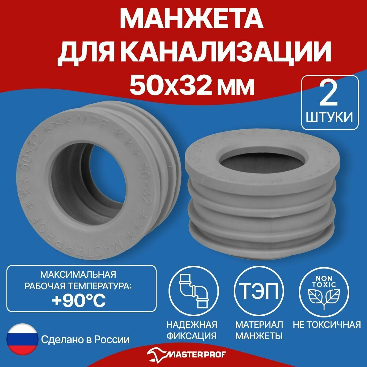 Манжета для канализации 50 х 32 мм, серая, уплотнительная сантехническая, 2 шт. интересное: