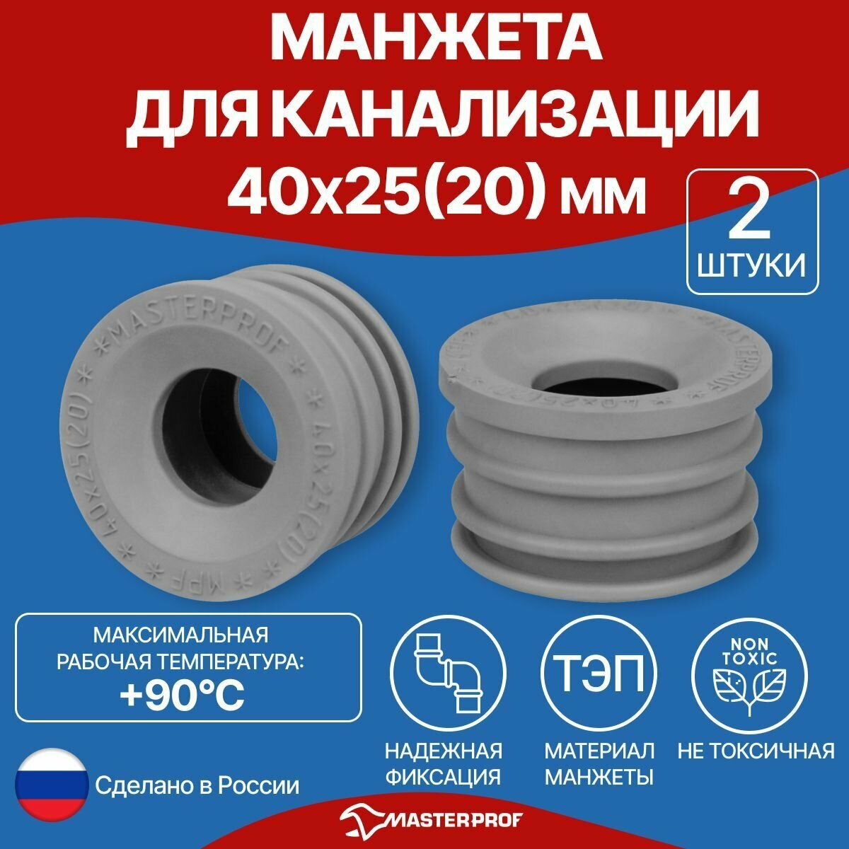 Манжета для канализации 40 х 25(20) мм, серая, уплотнительная сантехническая, 2 шт. интересное: