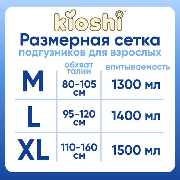 Подгузники для взрослых KIOSHI, размер M, 10шт