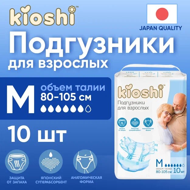 Подгузники для взрослых KIOSHI, размер M, 10шт интересное:
