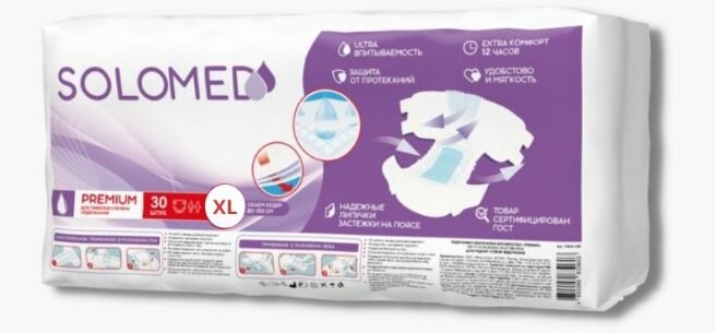 Подгузники для взрослых Solomed Premium ХL, 30 шт (150-175 см) / Впитывающие, ночные, для лежачих, женские и мужские