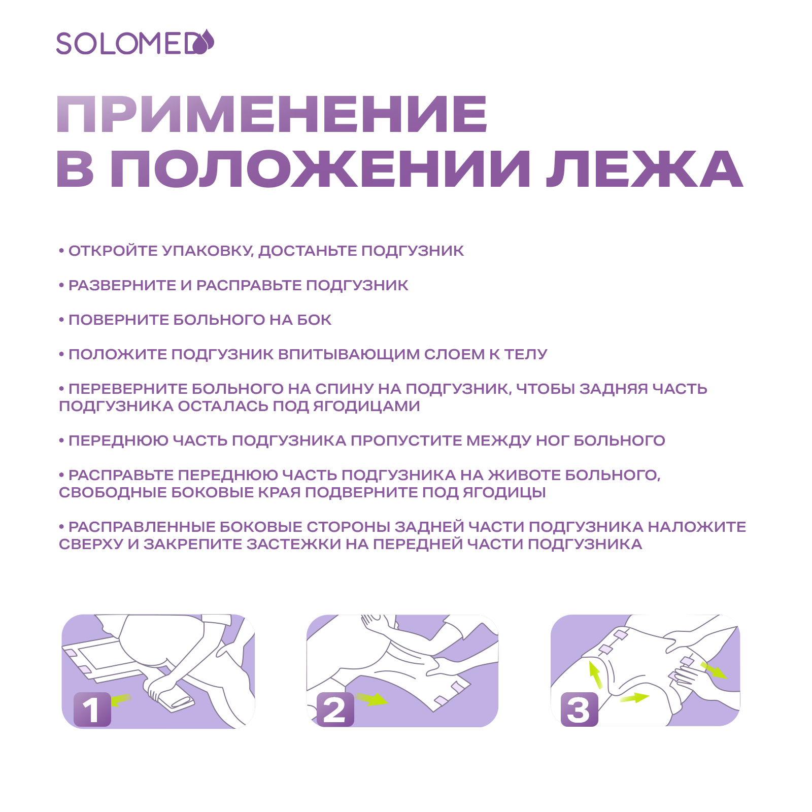 Подгузники для взрослых Solomed Premium L, 30 шт (120-150 см) / Ночные, для лежачих больных, по сертификатам ФСС, ТСР
