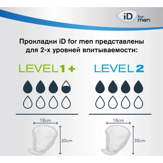 Урологические прокладки для мужчин ID for men level 2 (4 капли), 20 шт / 2 уп по 10 шт