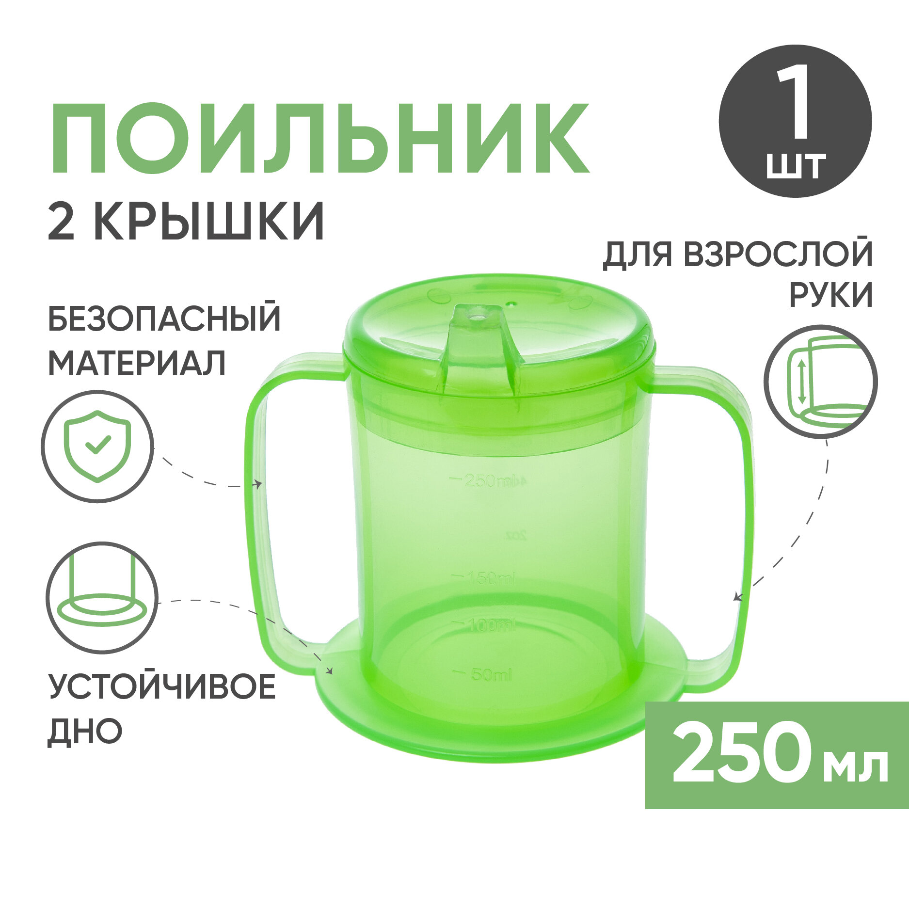 Купить Поильник медицинский BESIDE 250 мл, устойчивый стакан с ручками, две насадки в комплекте, для ухода за лежачими больными взрослыми и детьми, зеленый